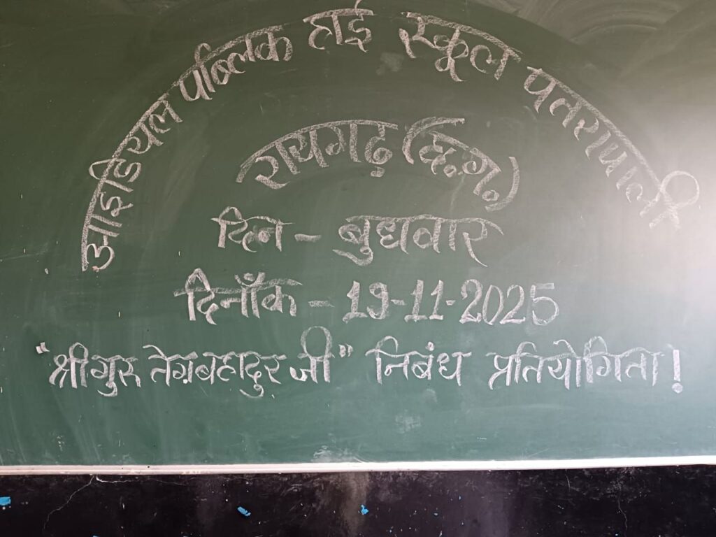 रायगढ़।सिख धर्म के नौवें गुरु और धार्मिक स्वतंत्रता के महान प्रतीक गुरु तेग बहादुर जी की स्मृति में “हिंद दी चादर” विषय पर निबंध प्रतियोगिता का आयोजन किया गया। प्रतियोगिता का उद्देश्य छात्रों को गुरु तेग बहादुर जी के जीवन दर्शन,आदर्शों और उनके द्वारा दिए गए साहस, सत्य, शांति और बलिदान के संदेश से जोड़ना था।