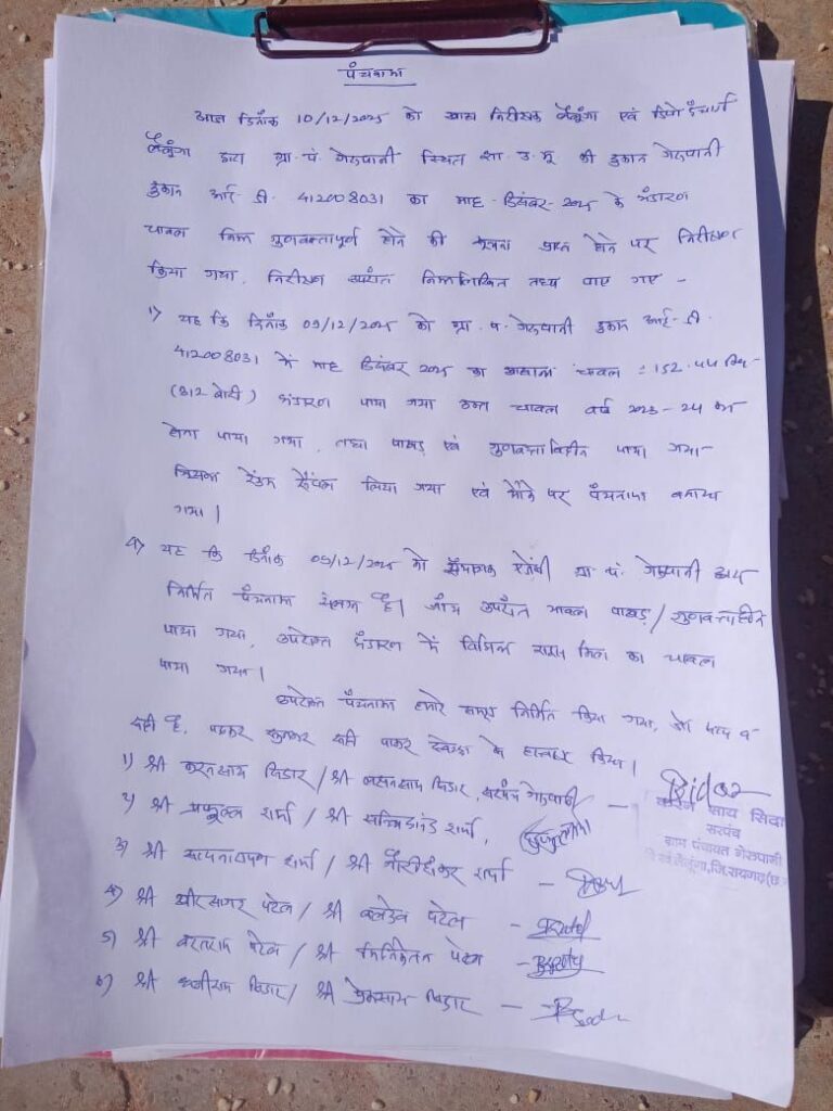 рдЧреЗрд░реБрдкрд╛рдиреА рдкрдВрдЪрд╛рдпрдд рдореЗрдВ рдкреАрдбреАрдПрд╕ рджреБрдХрд╛рди рдореЗрдВ рдкрд╣реБрдВрдЪрд╛ 250 рдмреЛрд░реА тАШрдкрд╛рдЦрдВрдб рдЪрд╛рд╡рд▓тАЩ рд╕рд░рдкрдВрдЪтАУрдЦрд╛рджреНрдп рдЕрдзрд┐рдХрд╛рд░реА рдиреЗ рдкрдВрдЪрдирд╛рдорд╛ рддреИрдпрд╛рд░ рдХрд░ рдЬрд╛рдВрдЪ рдЬрд╛рд░реА