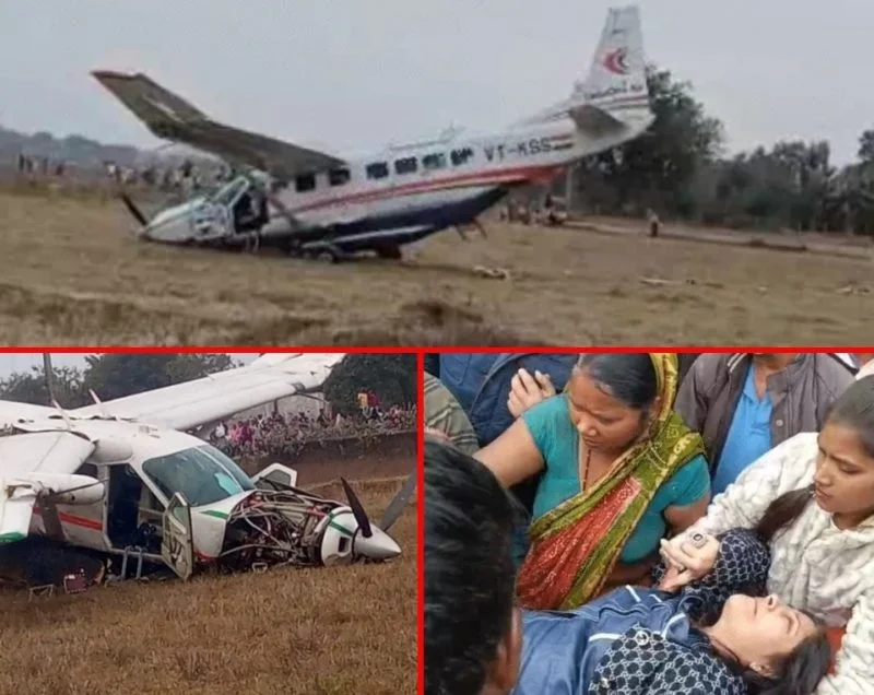 उसके विंग्स भी क्षतिग्रस्त हैं। इस हादसे में प्लेन मे सवार यात्री अनीता साहू, सुनील अग्रवाल, सविता अग्रवाल, सुशांत कुमार बिस्वाल शामिल है। वहीं प्लेन के पाॅयलट तरुण श्रीवास्तव और नवीन खंगार को भी गंभीर चोट आई है।