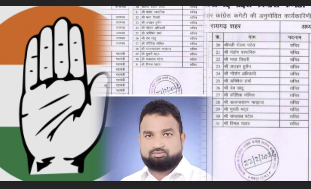 रायगढ़।भारतीय राष्ट्रीय कांग्रेस के छत्तीसगढ़ प्रदेश कांग्रेस कमेटी द्वारा जिला कांग्रेस कमेटी, रायगढ़ शहर की अनुमोदित कार्यकारिणी की घोषणा कर दी गई है।इस नई कार्यकारिणी के गठन से संगठन को जमीनी स्तर पर मजबूती मिलने की उम्मीद जताई जा रही है।