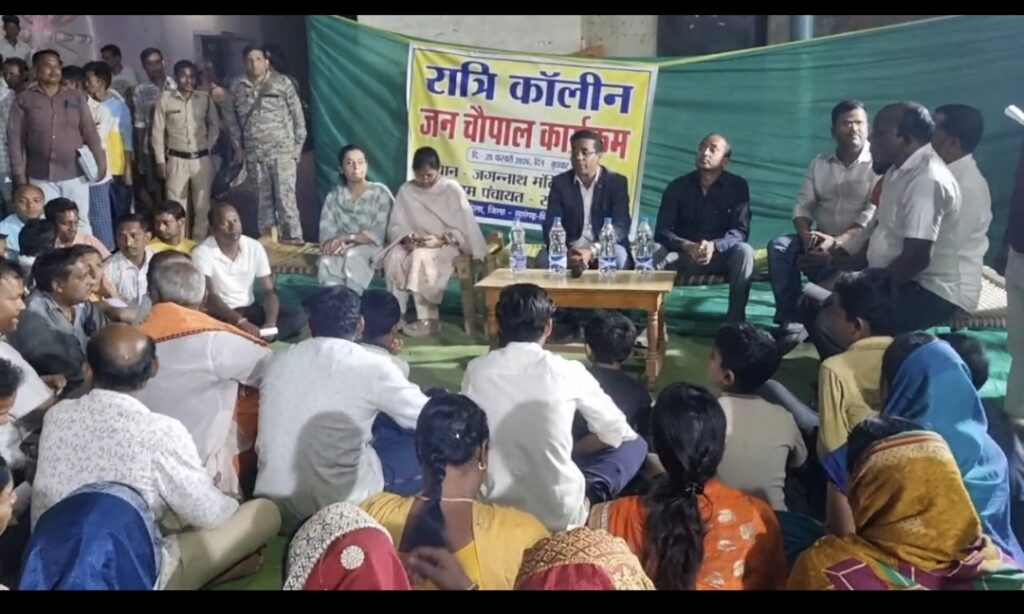 “सारंगढ़ बिलाईगढ़ जिले के सबसे दूरस्थ सांकरा गांव, ओड़िशा से घिरा है, जहां बुधवार को रात्रिकालीन जनचौपाल लगाया गया था। जिला एवं ब्लाक अधिकारी भी नागरिकों की मांग और समस्या से रूबरू हुए। इस पहल का उद्देश्य केंद्र एवं राज्य सरकार की योजनाओं का लाभ अंतिम व्यक्ति तक पहुंच रहा है या नहीं, इसकी जमीनी हकीकत जानना है। चौपाल में ग्रामीणों से मांग और शिकायत प्राप्त हुआ है जिसे गंभीरतापूर्वक जिला प्रशासन द्वारा निराकरण किया जाएगा।”