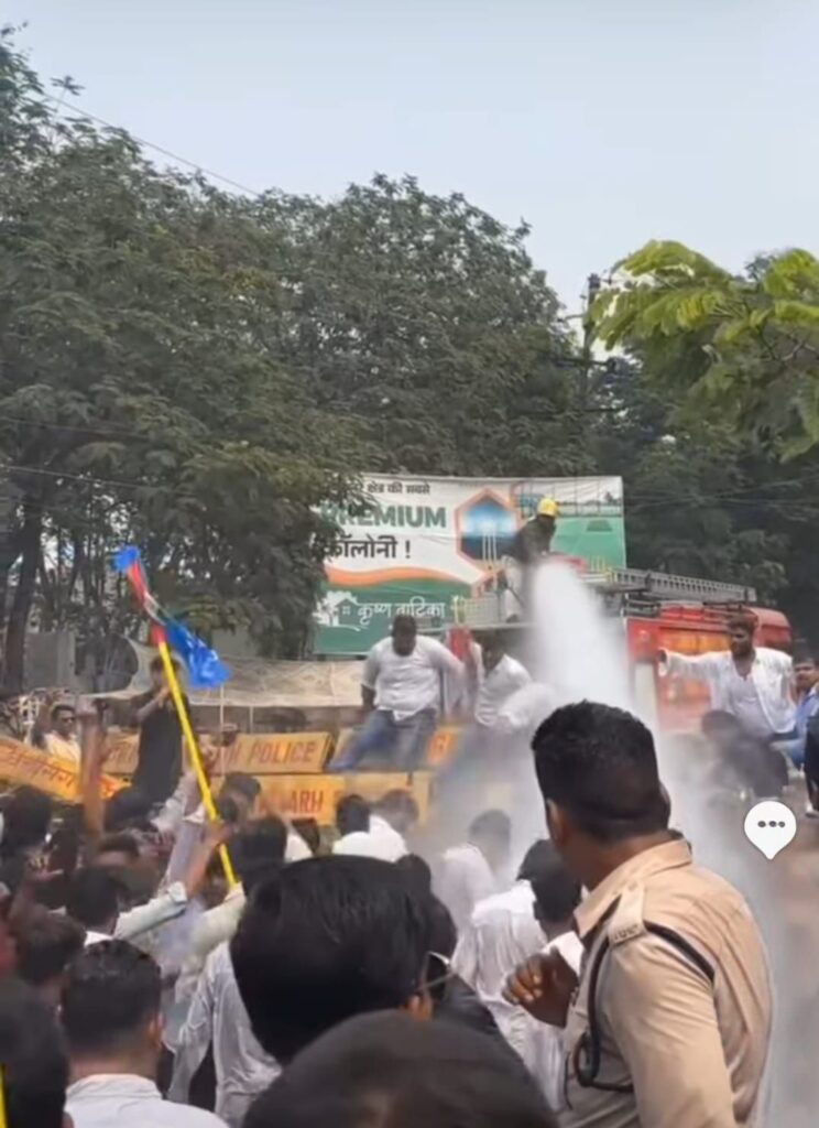 बैरिकेड तोड़कर आगे बढ़े कार्यकर्ता, पुलिस ने चलाया वॉटर कैनन