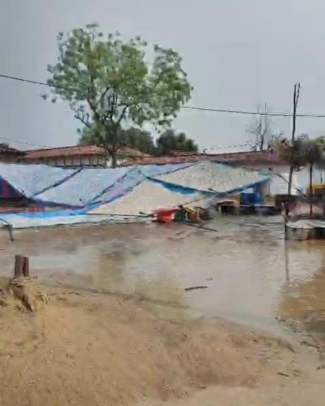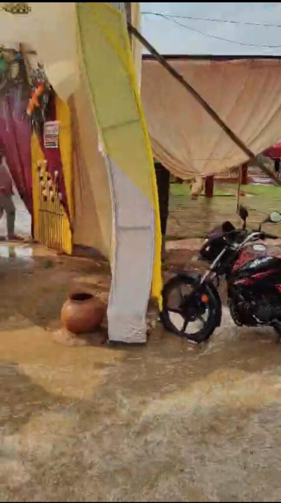 ग्रामीणों ने दिखाई एकजुटता, घंटों में फिर खड़ा किया पंडाल