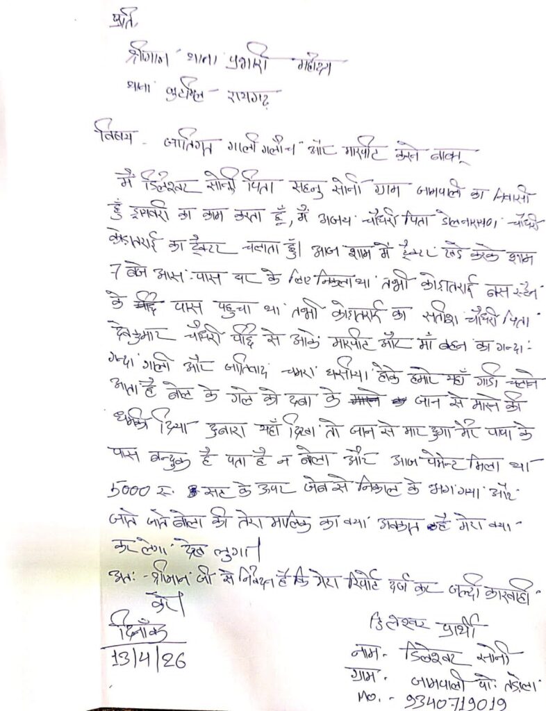 स्थानीय सूत्रों के मुताबिक,गांव के ही निवासी सतीश चौधरी ने पीड़ित की जाति जानते हुए जानबूझकर उसे सार्वजनिक रूप से अपमानित किया। आरोप है कि आरोपी ने दबंगई दिखाते हुए पीड़ित के साथ मारपीट की और जातिसूचक शब्दों का प्रयोग किया।